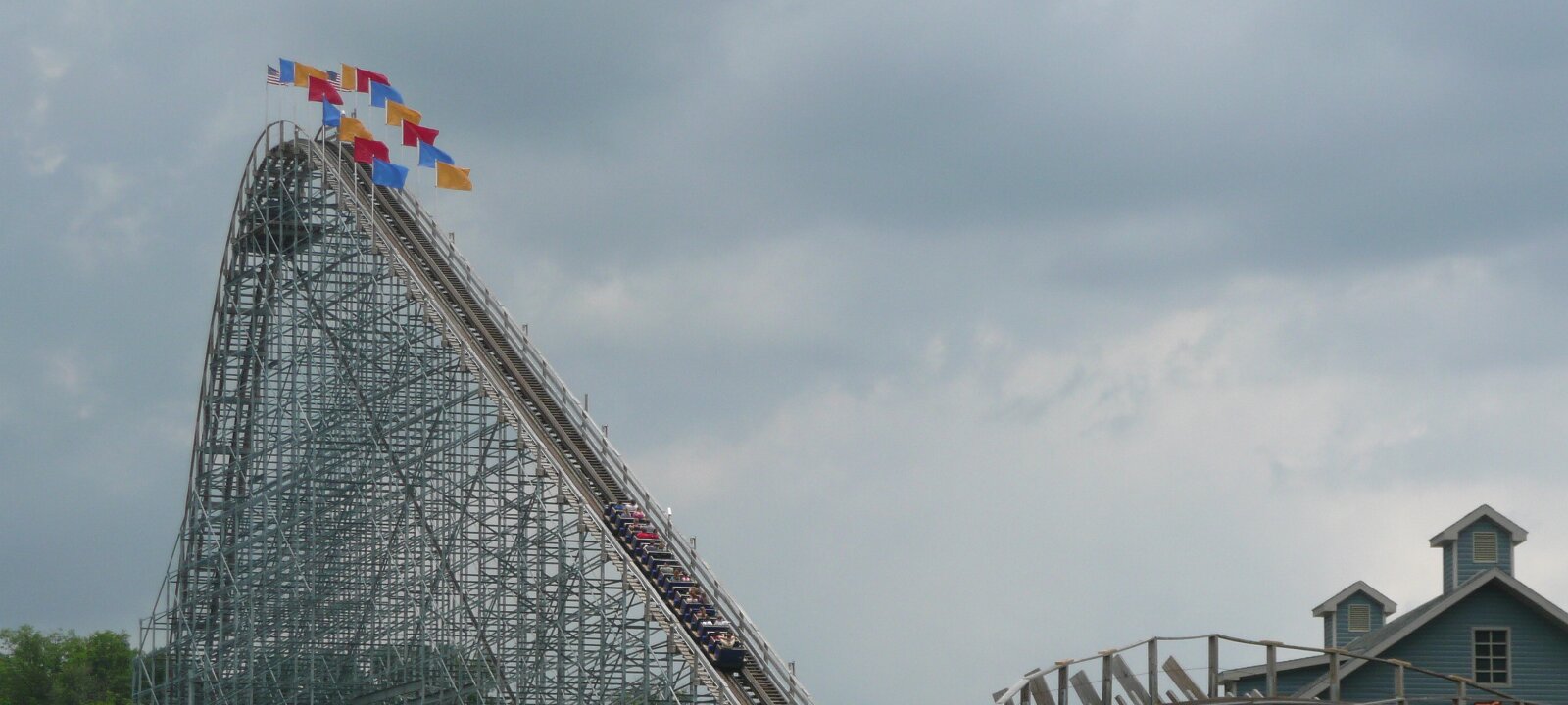 Great coaster - it just doesn't quit with constant turns and hills and tunnels. Just couldn't get enough of this one. The other two wooden coasters were shorter…