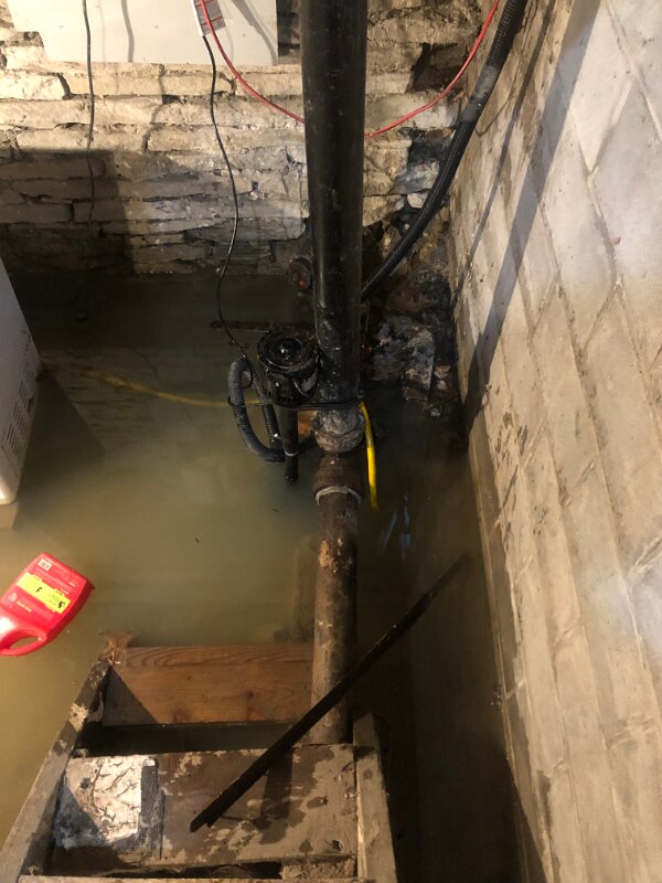 New sump pump in the sump catch basin I put in last year.