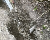 Found the break in old ceramic pipe and put in new pipe going right downhill.