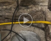 Old sump pump in deepest spot where it should be draining out of the house.