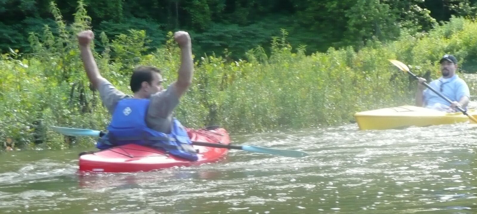 Billy did get hung up on the bottom just before faster section. Don bailed him out pulling on his boat to dislodge him.