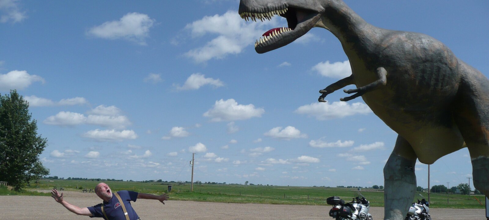 Big dinosaur at small general store at turnoff for the park.