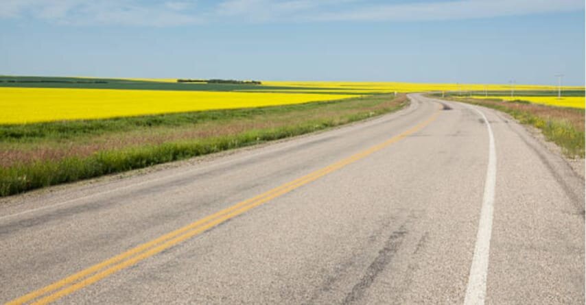 Typical vista through Manitoba and Saskatchewan. The closer I got to Swift Current, the scenery became rolling hills.