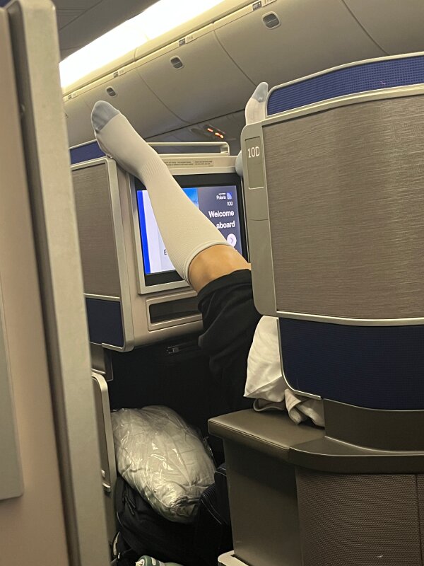 United Newark to Frankfurt. First class upgrade with flat bed. Pretty good sleep.