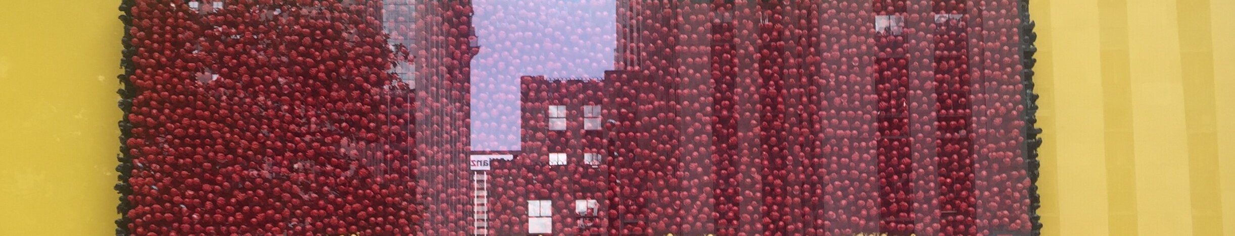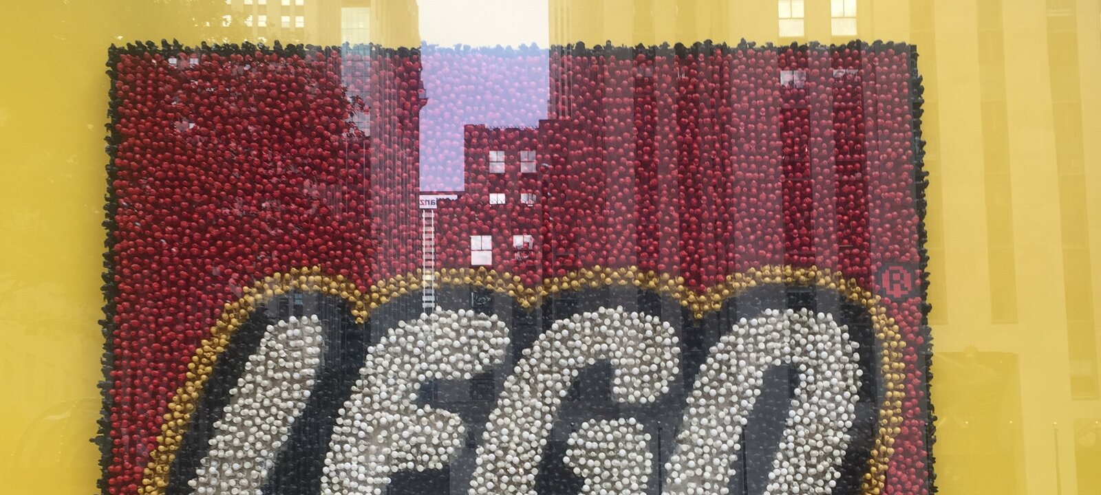 View from inside seating in Times Square. Hard to focus on anything.