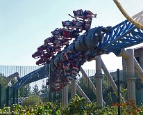 Furius Baco Length: 2,788.8 ft Inversions: 1 Speed: 83.9 mph Duration: 0:55 G-Force: 4.7 Max Acceleration: 0 - 83.9 mph in 3.5s