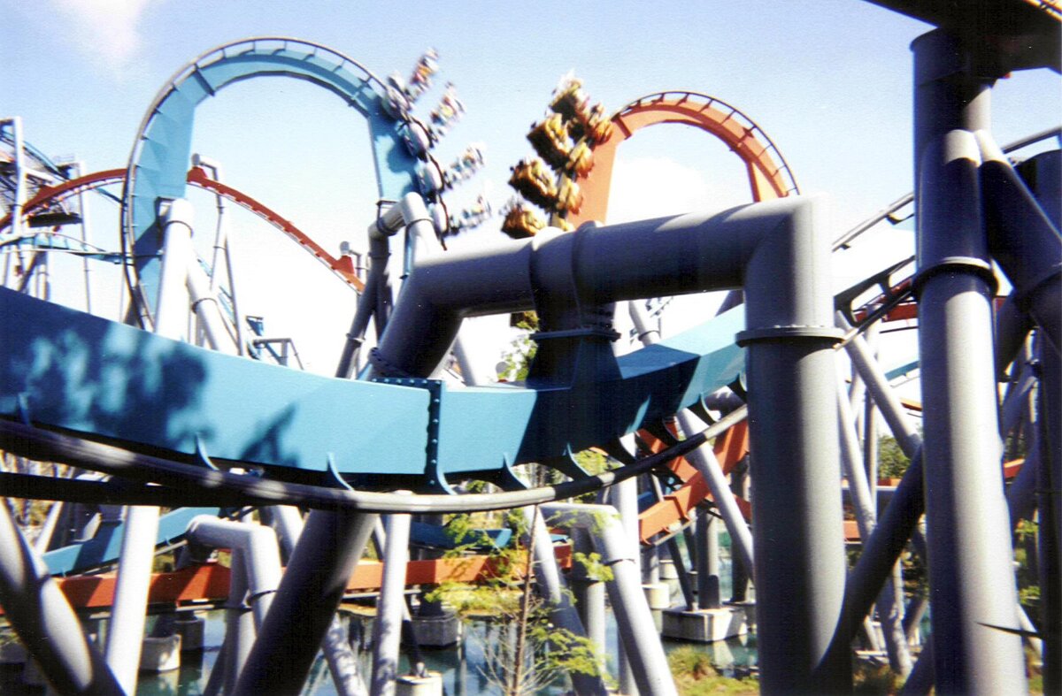 Dueling Dragons - At least with the rain we rode many times on both trains with almost no lines.