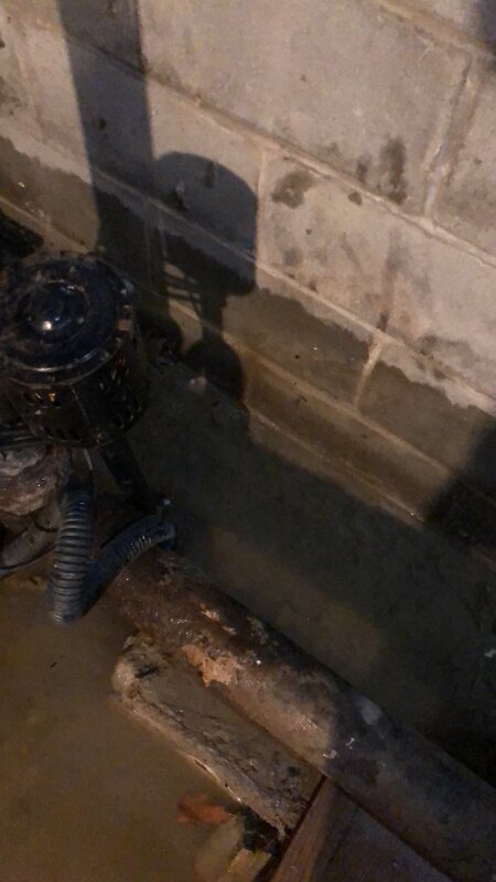 Old sump pump in deepest spot where it should be draining out of the house.