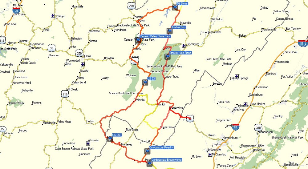 Cowpasture road On the way to STN Spring Meet the GPS found this interesting turn north from 250. This is the VA side narrow with no markings. I liked it. We…