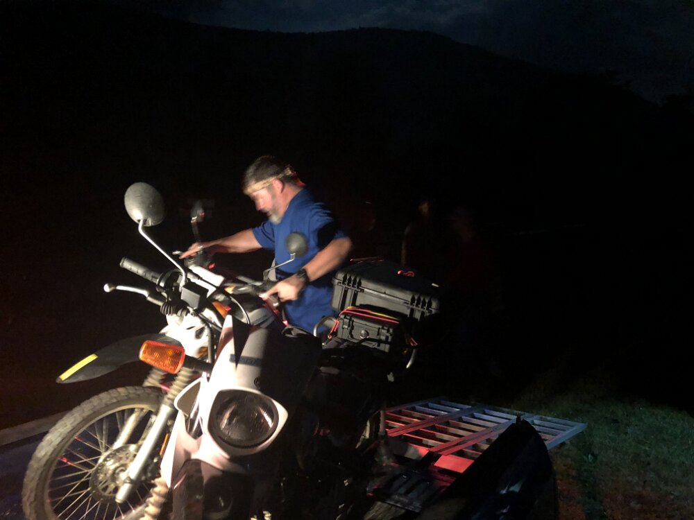 Loading in Mike's truck. Jam it in there - no wheel chocks.