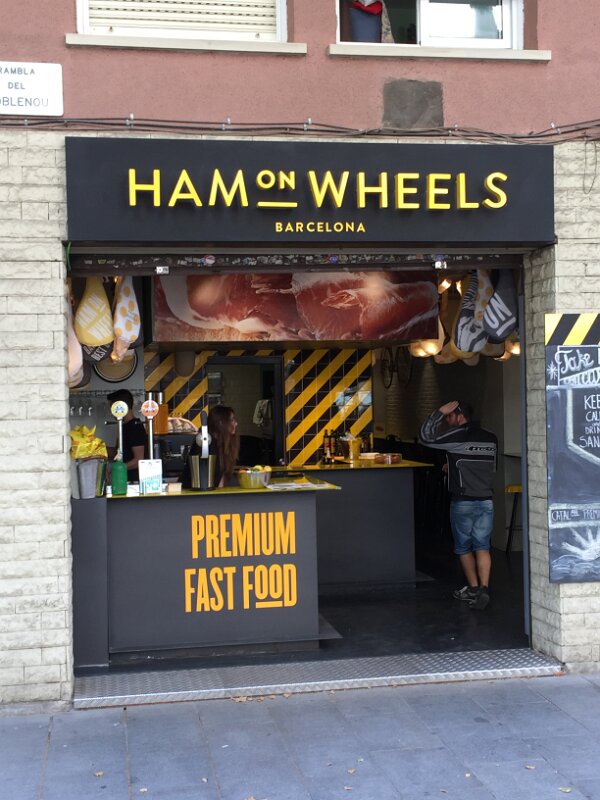 Barcelona. Ham is everywhere in Spain. We had lunch here.